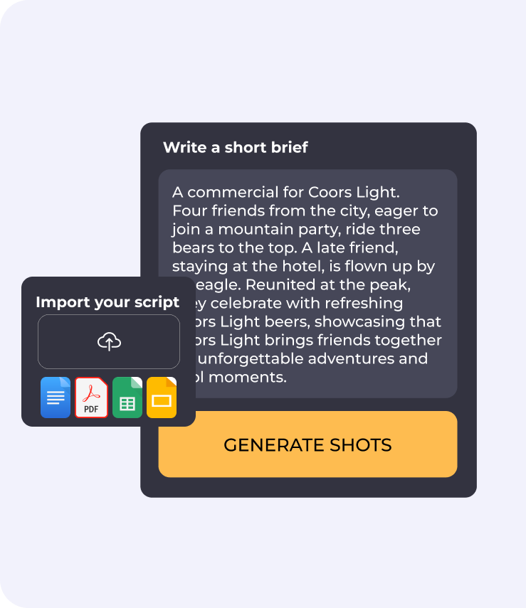 Provide your creative brief, and our AI transforms it into a detailed scene-by-scene script.